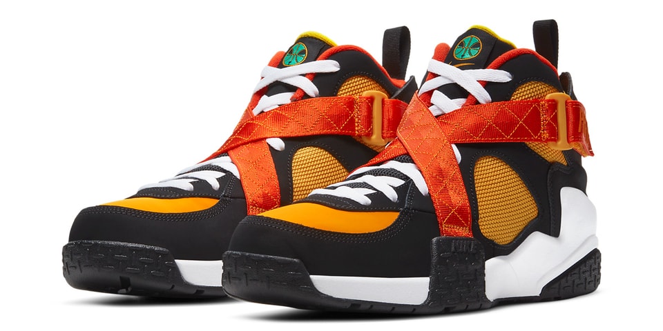 After adding Kyrie Irving’s new Kyrie 7 to its ranks, the Nike “Rayguns” pack is looking to the archives for its next style — namely, the Air Raid. A Tinker Hatfield-designed, Tim Hardaway-endorsed basketball shoe that made its retail debut in 1992 and has released in a handful of classic colorways this fall, the Raid’s multi-texture upper and signature criss-crossing straps lend themselves well to the fictional ABA team’s vibrant color palette.