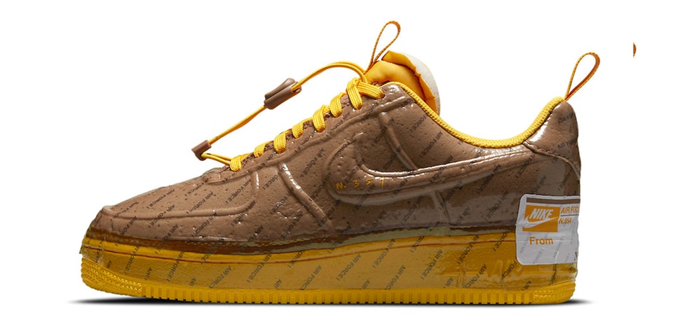 The “Archaeo Brown” colorway comes with bright “University Gold” highlights that give the shoe a prominent two-toned design. Starting at the top of the shoe is a yellow nylon tongue, complemented by a ripstop pull tab, a set of tonal laces and an elastic drawstring. The rest of the uppers are constructed in a thick foam colored in “Archaeo Brown,” tightly pressed over with a transparent wrap emblazoned with “Air Force 1” branding. Other details like a thinly scribbled “N. 354” logo on the Swoosh, a white sticker on the heel and a yellow midsole rounds off the shoe’s vivid design.