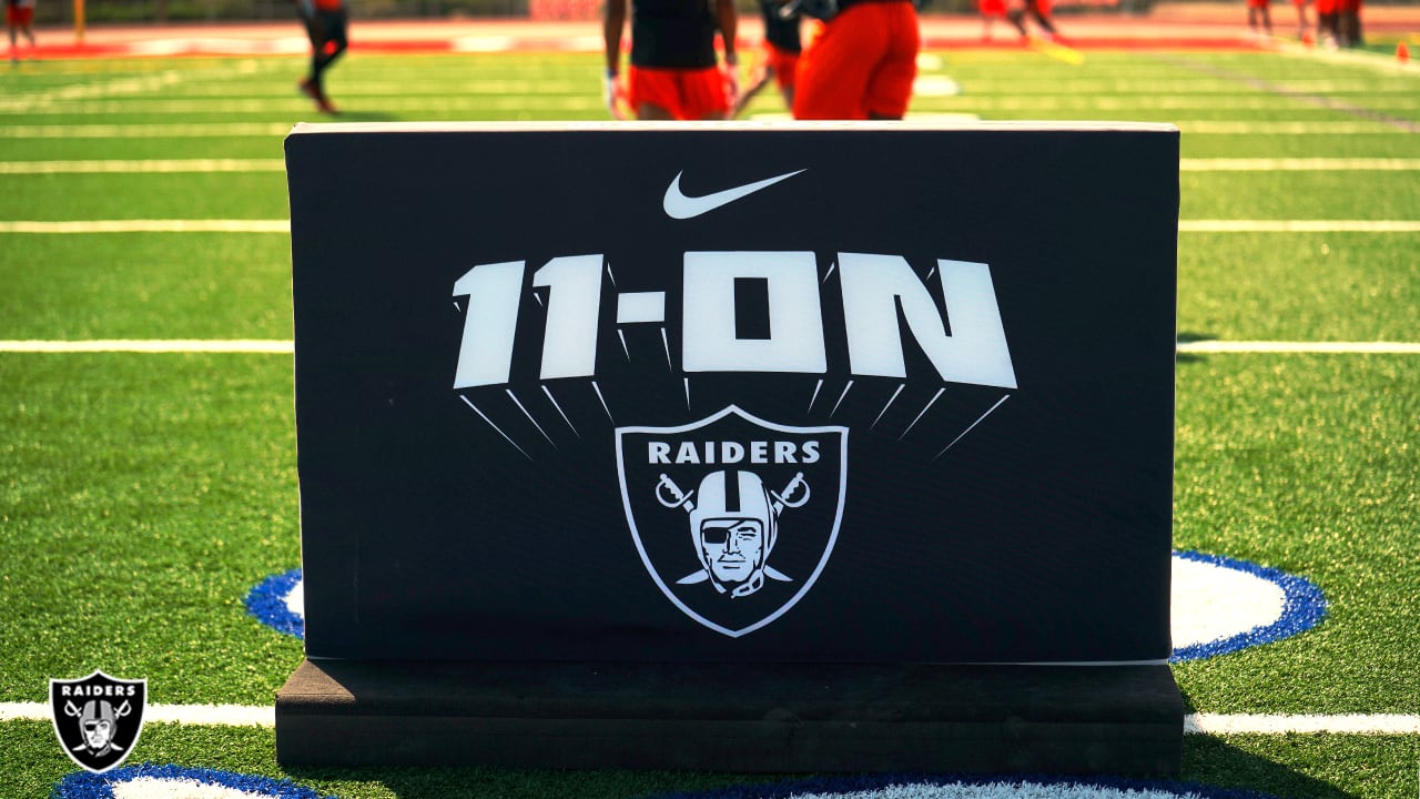Sixteen Las Vegas area high school teams participated in the Nike 11-On, a scholastic-based, team-oriented, character-building program. The one-day curriculum kicked off with Raiders Alumni Ike Ekejiuba and Jay Schroeder speaking to the student-athletes about character development, film study, nutrition as well as strength and conditioning in the morning, followed by on-field sessions.